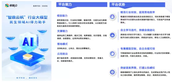 今年3月,易联众集团旗下智鼎科技公司发布“智鼎云帆”行业大模型,持续发力AI民生赛道,并打造“智能自动办理平台”,助推人工智能技术在数字政务领域的有效应用。易联众智能自动办理平台以医保政策、数据、业务为基础支撑,利用大数据、人工智能、数字人等技术,实现内容视频化、交互线上化、服务智能化,构建集问、帮、办三大能力的一体化平台,为政务服务提供全新的服务模式。