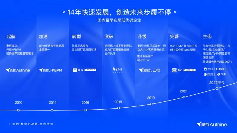 作为低代码行业头部厂商,奥哲是国内唯一一家拥有完整低代码产品矩阵的数字化服务厂商,支持私有云、混合云和公有云等多种部署模式,兼具满足大中小企业的数字化转型需求。截止目前,奥哲已累计服务20万+企业组织,合作客户覆盖了多个核心产业赛道,其中包括制造、金融、建筑、能源、汽车、房地产等10+主流行业。在全球知名数据研究机构IDC发布的最新《2023上半年度中国低代码和零代码软件市场追踪报告》中,奥哲作为低代码独立厂商,稳居低代码平台总体市场第一,并三次登顶低代码总体市场!