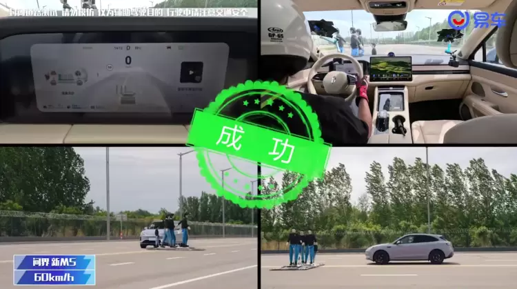 尤其是在应对行人突然闯入车道这一突发情况时,问界新M5的表现更是让人印象深刻。在测试中,问界新M5不仅成功识别并发出提示,还稳稳地刹住了车,避免了潜在的危险。这一表现不仅展示了问界新M5的出色性能,更体现了其对行车安全的深刻理解和坚定承诺。