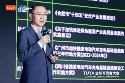 论坛伊始,涂鸦智能新能源解决方案产品总监杨清会以“赋智创新,IoT助力企业实现光储充热用一体化管理”为主题发表演讲。杨清会表示:“在全球可持续发展的背景下,低碳、节能已成为千行百业的首要需求点。为助力企业节能减排,我们在能源领域持续探索,并依托开发者平台,打造了一系列能源管理解决方案。这些解决方案可帮助企业打通光、储、充、热、用等设备设施,加之开发者平台的预集成AI能力和EMS系统,可实现对用电设备的精准调控,大幅降低终端业主的能源消耗量及使用成本,搭建一个更加绿色低碳的工作生活环境。”