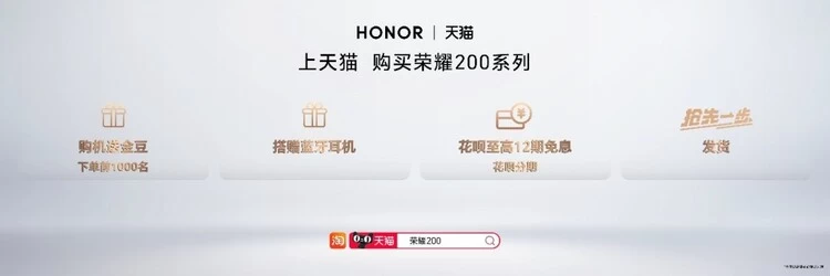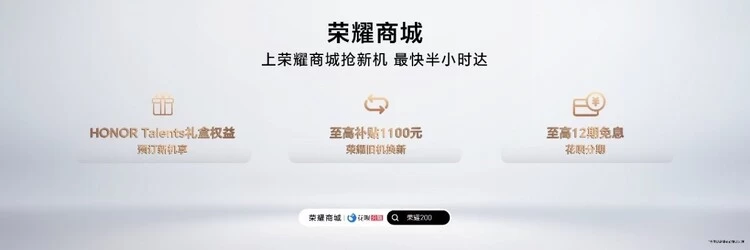 首销期间,线上登录京东、天猫、荣耀商城购买荣耀200系列,可享受至高12期免息及诸多福利。其中,上京东购荣耀200系列新品即赠PLUS年卡及荣耀亲选LCHSE X5s耳机,以旧换新至高补贴1100元;上天猫购荣耀200系列新品加赠蓝牙耳机;登录荣耀商城,购买荣耀200系列新品即赠荣耀亲选蓝牙耳机与HONOR Talents定制礼盒,以旧换新最高补贴1100元,支付还能抽免单。