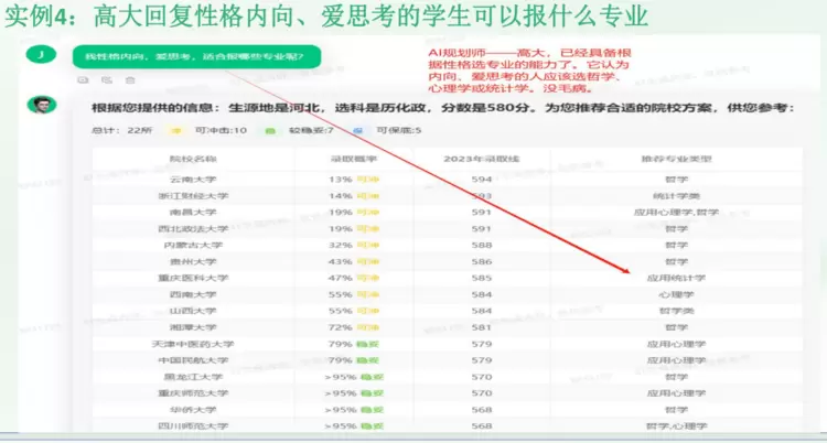 其三,相比大部分真人规划师,“高大”的“阅读理解能力”更强,更能快速将不明确的表述提炼为志愿报考意愿。