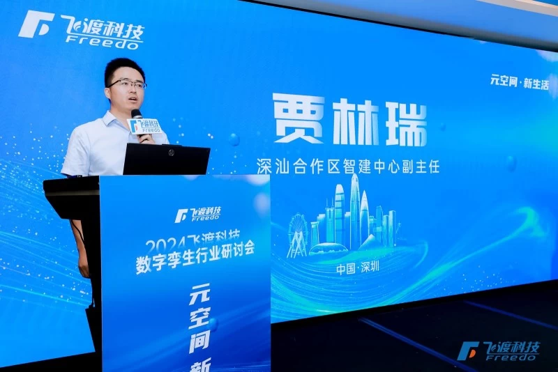 深汕合作区智建中心副主任贾林瑞发表致辞,他提出智建中心在深圳瞄准新风口,打造系列先锋之城的背景下,不断推进智慧城市和数字政府建设工作,并与飞渡科技构建了密切的合作关系。在智慧深汕CIM平台与IOC地图模块开发服务项目中,飞渡科技凭借其在产品性能、用户体验、国产化适配等方面的核心优势为深圳智慧城市和数字政府建设工作提供了很好的技术支撑。在未来,仍将携手飞渡科技为数字化产业新未来赋能。