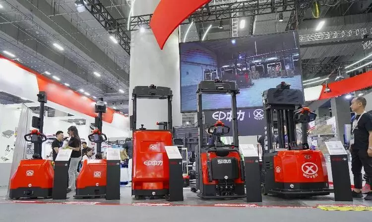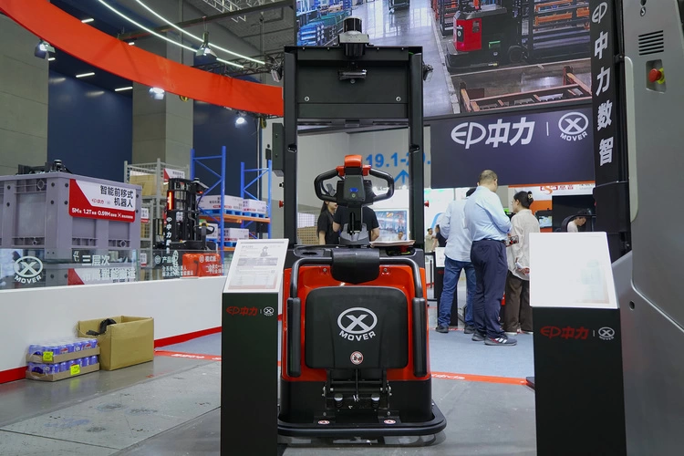 本次展会现场,中力超薄的1.5吨自动搬运车更是引人围观,整车自重仅200kg,可充分适合多种类型电梯,各种窄通道搬运使用;同时人机混合作业,安全又高效。