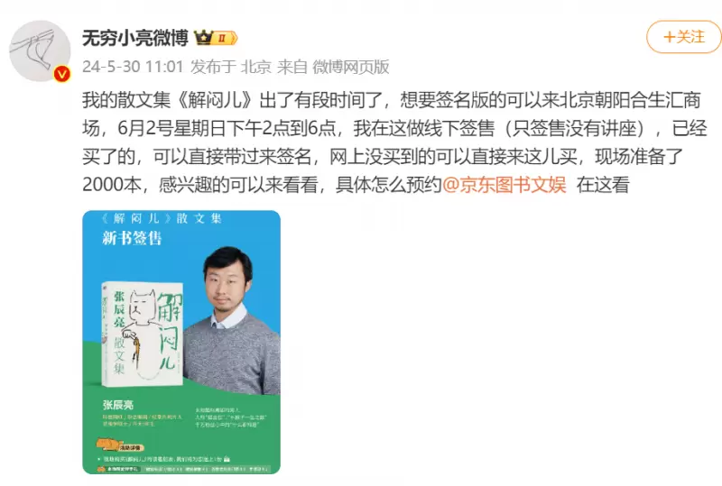 人气火爆!京东图书携手磨铁举办无穷小亮新书《解闷儿》线下签售会