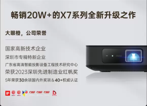对于一个发展7年的科技制造企业,想要不断引领行业新的解决方案,就需要付出比其他品牌更多的精力和成本,投入研发,投入生产,进行上万次测试,不断改变和拓宽既有认知边界。为满足用户需求精研行业先进技术,大眼橙推出多款独创和首创的差异化投影产品,凭借公司产品研发和设计实力,斩获30多项国内外奖项,其中包揽了德国红点、iF、美国IDEA三大国际大奖,实现了国际工业设计奖大满贯。 其中便有一款刚面就获得德国红点奖的爆款投影仪——大眼橙x7dpro。