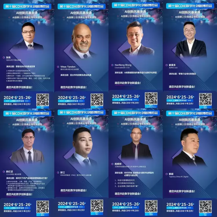 在这个里程碑式的时刻,CDIE不仅仅是一场行业盛会,它是对过去十年在数字化转型和创新方面成就的庆祝,更是对未来的期待和探索的窗口!在这个激动人心的时刻,我们诚挚邀请您参与到这场未来技术的盛宴中,共同见证和塑造数字化时代的新篇章!