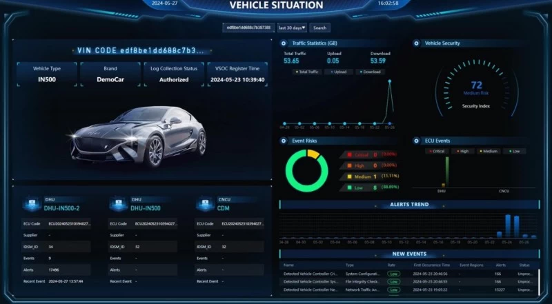 ·全面视角与风险应对:结合SBOM数据,inVSOC为车辆安全监测提供全面视角,确保能够精准识别并应对车辆系统中潜在的安全风险