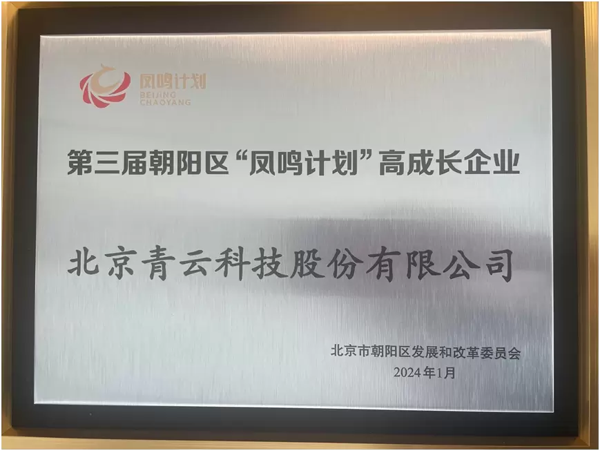 青云科技荣膺朝阳区第三届“凤鸣计划”高成长企业