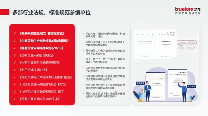 绿色供应链管理的构建在当前全球可持续发展的大背景下具有极其重要的意义,其关注度日益上升。作为采购供应链数字化产品及服务提供商,北京筑龙凭借其多年在央国企采购平台建设和运营方面的丰富经验,对央国企采购的操作和管理有着深入的理解和独特的见解。同时,北京筑龙还积极参与了多部行业《标准》与《规范》的起草工作,这些宝贵的经验将为其在接下来建设央国企招标采购平台、服务客户时提供有力支持,助力央国企采购实现合规、高效和绿色化。