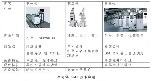 在这背后,根植于工业物流自动化场景的AMR技术正在不断演进,从第一代的导轨式机器人,到第三代集群作业的AMR矩阵,AMR正在从硬件性能持续优化的单体设备,转变为半导体整厂智能化系统下的智能因子,迈向机器人软硬件与整厂相关软硬件的融合演进时代。
