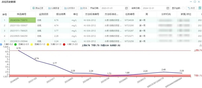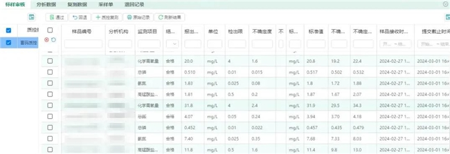 若发现分析数据异常,可以发起重采的任务,进行重新采样,重新检测上传数据。数据审核时,可自动关联点位的评价标准,并根据历史数据极值进行超历史极值的提醒,质控考核样品的标准值、不确定度自动评价预警。