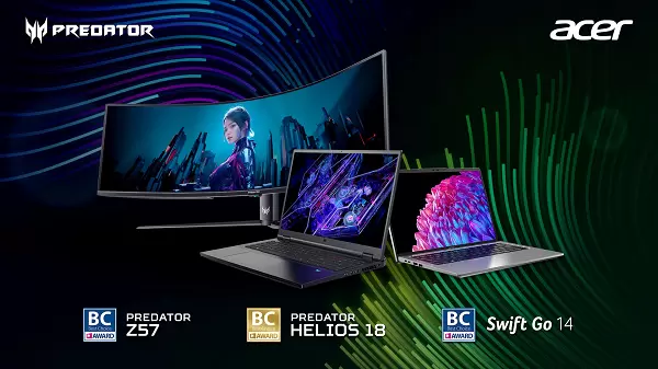 宏碁深耕电竞市场,掠夺者电竞品牌更是凭借追求极致游玩体验的品牌理念与独特的产品设计深受全球玩家的喜爱。此次勇夺金奖的掠夺者战斧18搭载顶级处理器,并支持宏碁独家的散热AI技术,采用专利MagClick机械轴键盘设计,为当前PC市场打造出旗舰级电竞本典范。同样备受玩家喜爱的掠夺者 Z57 MiniLED电竞显示器不仅支持120Hz屏幕刷新率和双UHD分辨率,更凭借32:9屏幕比例和1000R曲率,拉近用户与游戏场景的距离,带给玩家以沉浸式畅游虚拟世界的享受体验。