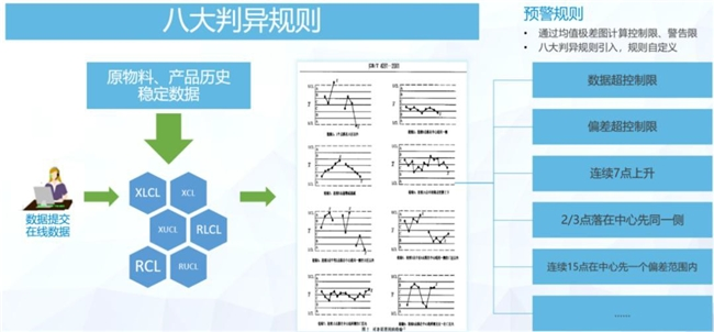 QMS 提供统计制程控制模块,能通过此功能对生产过程进行实时监控,区分生产过程中产品质量的随机波动与异常波动,对生产过程的异常趋势提出预警,及时采取相关措施,消除异常,恢复过程稳定,提高和控制生产产品质量。
