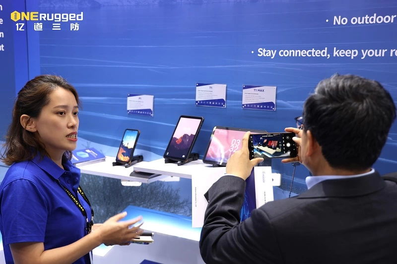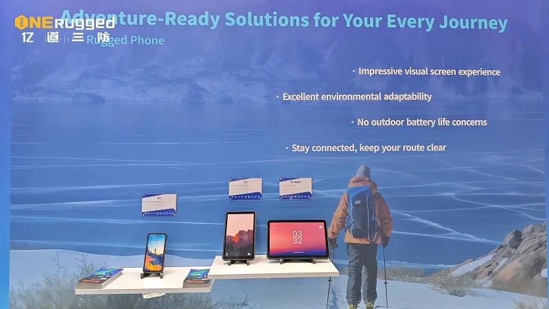 展会现场,亿道三防新晋为户外三防手机品牌,展示的户外三防手机平板产品包括P1户外三防手机、P2户外三防手机、P2 PRO户外三防手机、T1户外三防平板和T1 Max户外三防平板。需注意:不同型号的户外三防产品在形态和部分配置上有所差异。