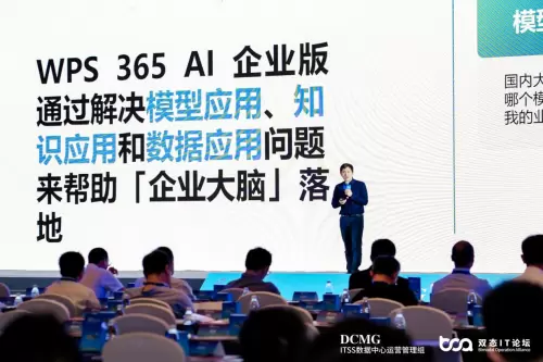 (金山办公助理总裁黄志军发布《WPS 365企业大脑数字化转型解决方案》 图片来源:双态IT论坛)