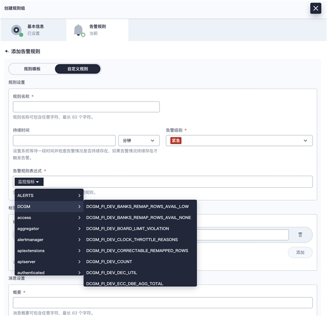 基石智算(coreshub.cn)AI 智算平台2.0 新增节点监控、任务监控、容器组监控、高速网络监控和 GPU 监控等功能,提供从硬件故障处理到资源使用情况的全方位监控,及时发现并解决潜在问题。同时,可视化的自定义告警配置支持邮件、企微、webhook等多种通知渠道,确保用户随时掌握 AI 基础设施的运行状态。