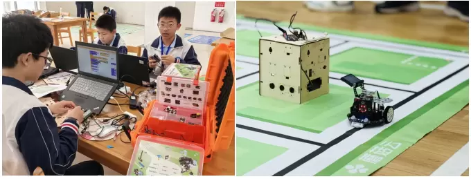 “开源硬件应用设计挑战赛”由上海智位机器人股份有限公司作为赛项技术支持单位。赛项以“智慧交通”为场景主题,采用团队赛的方式进行,要求参赛学生使用 Mind+或 MakeCode 编程软件及开源硬件,综合运用人工智能、计算机编程、电子技术、结构设计等有关知识,设计自动驾驶小车,应对日常驾驶中的常见路况,完成比赛各项任务。
