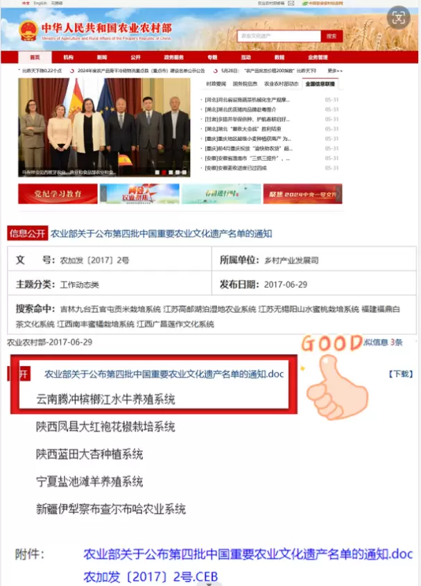 《腾冲槟榔江水牛养殖系统进入重要农业文化遗产名录》,云南日报,20170706