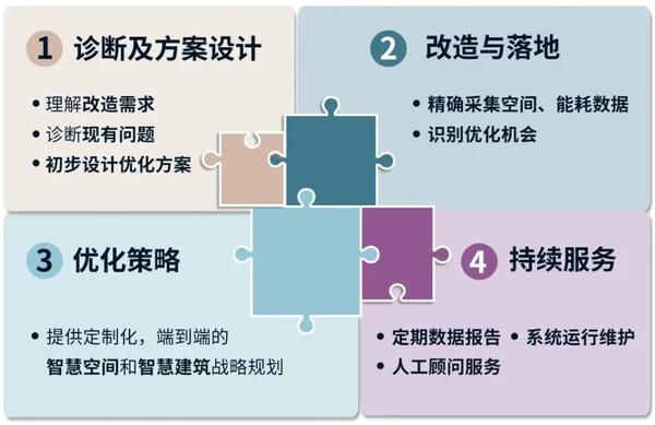 通过诊断-改造-优化-持续运维的全生命周期服务,并以长期战略视角与整合性平台赋能企业"以数据为基做决策",仲量科技的解决方案旨在打造真正的智慧化的办公空间,实现空间和设备资源的效率最大化,优化员工的办公体验与状态,从而助力企业降本增效。