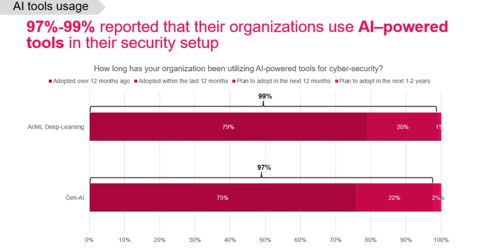 “97-99% 的企业使用 AI 工具,大量企业转向 GenAI 以实现全面的安全防护策略。”