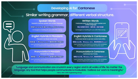 三星Galaxy AI的项目经验表明,不管是在中国大陆还是中国香港地区,一个全球品牌不仅应拥有专业的当地团队和相关的当地知识,还要具备与当地第三方合作伙伴开展开放合作的能力。在中国香港地区,粤语是构建当地居民文化特性的重要部分。为此,当地团队必须研发正确的人工智能语言模型。