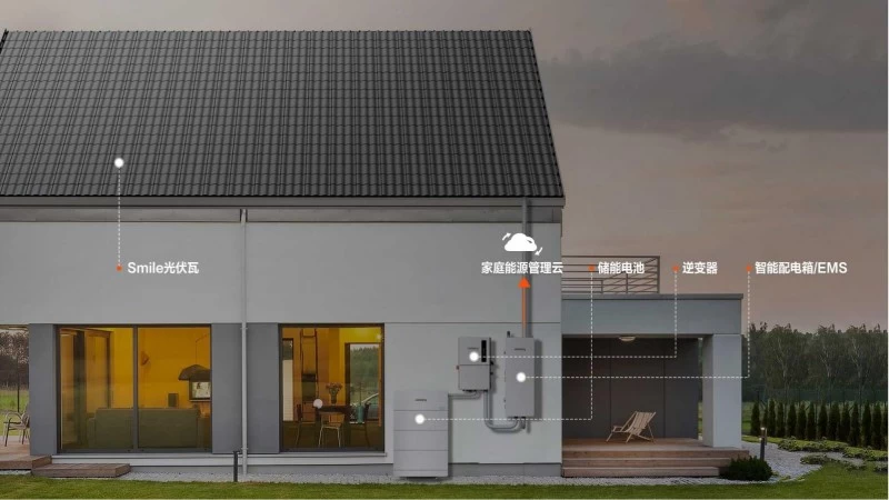 作为本次发布会的焦点之一,全球领先的Smile光伏瓦家庭绿电系统凭借其全方位集成的颠覆性产品设计备受业界瞩目。该系统实现了6合1的一体化结构,将智能家庭能源管理系统、EMS、Smile光伏瓦、逆变器、储能模组和智能配电箱完美集成,打造出一款全栈式的家庭绿电解决方案。