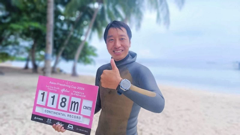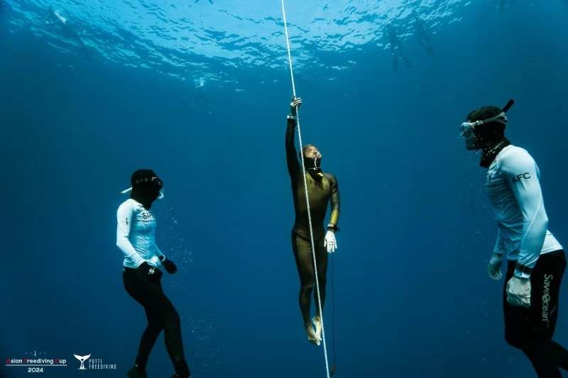 6月5日,亚洲最大自由潜赛事2024年AIDA自由潜亚洲杯(AIDA Asian Freediving Cup 2024)在菲律宾邦劳岛圆满落幕。中国潜水运动员、AIDA国际自由潜水教练训练官王瑾佩戴华为WATCH Ultimate非凡大师,分别以CWT123米(恒重有蹼)、FIM111米(攀绳下潜)、CWTB118米(恒重双蹼)的成绩打破三项自由潜亚洲纪录,同时在CNF(无蹼恒重)项目中取得67米的白牌(有效成绩),以总排名第一的成绩获得亚洲杯七连冠壮举。