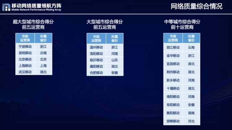 权威发布 网络质量领先的20个城市运营商均为中国移动