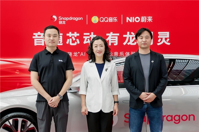 (图中从左到右分别为:腾讯音乐娱乐集团技术副总裁兼天琴实验室负责人周文江、高通全球副总裁侯明娟、蔚来信息娱乐软件部高级总监兼资深产品体验专家雷金亮)