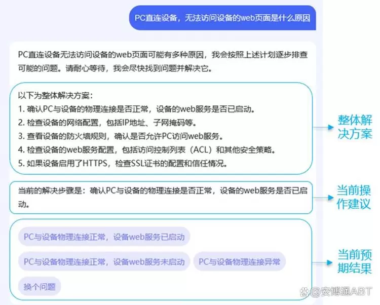 防火墙在给出整体解决方案的同时,还会提供分步建议。对于每一个步骤,都会展示细分建议和可能的结果。运维人员可按照实际情况逐步进行,快速有序地解决网络和安全问题。