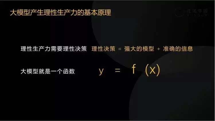 现在,参数在不断提高的过程中并没有增加信息,不断提高参数只是让模型的推理能力变强大了。做个类比,模型是f,信息是x,只有把正确的x给到强大的模型f,才有可能算出正确的y,才有可能辅助企业的理性决策和下一步行动,这是部分企业认为大模型不好用的核心原因。