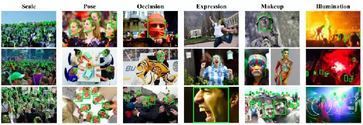 Wider Face 比赛使用同名数据集,它首次开源于 CVPR 2016,包含 32,203张图像和 393,703 个检测框标注,是当前不同场景之下人脸类别跨度最大的数据集,从小脸密集脸、多姿态脸、遮挡脸、表情脸、化妆脸到模糊脸,一应俱全。