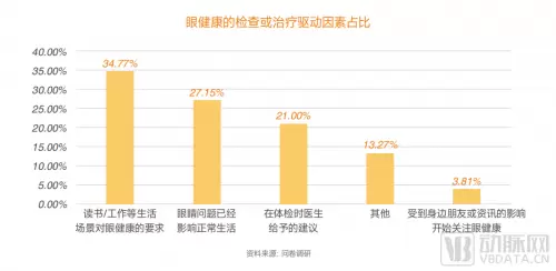 眼视光消费者画像4:超3成用户是因读书/工作等生活场景进行眼健康的检查、治疗除了预防外,眼健康的检查与治疗也尤为重要。