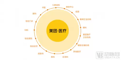 美团消费医疗于2019年启动,为用户提供从健康检测、预防调理到轻症治疗的信息决策和服务选择,其中覆盖了眼科、眼科、体检、疫苗、中医等35个行业,以及补牙、正畸、HPV、针灸、近视手术等106个细分品类服务。