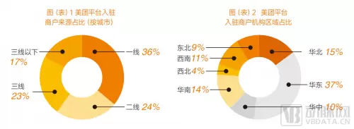 根据美团平台的数据,一二三线及三线以下城市入驻美团的商户占比分别为36%、24%、23%、17%。可以看到,三线及以下城市的比例已经达到了40%。