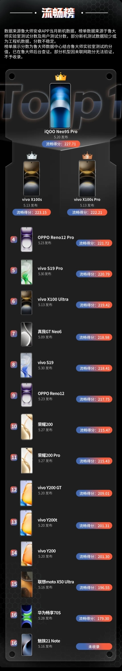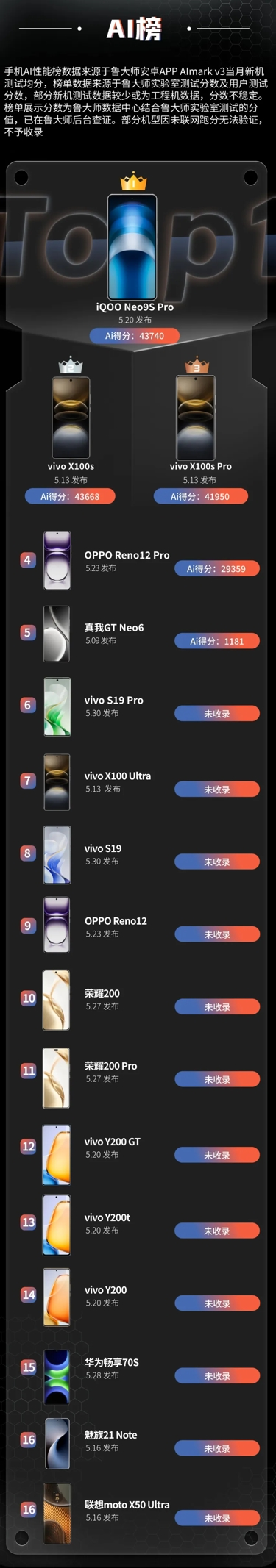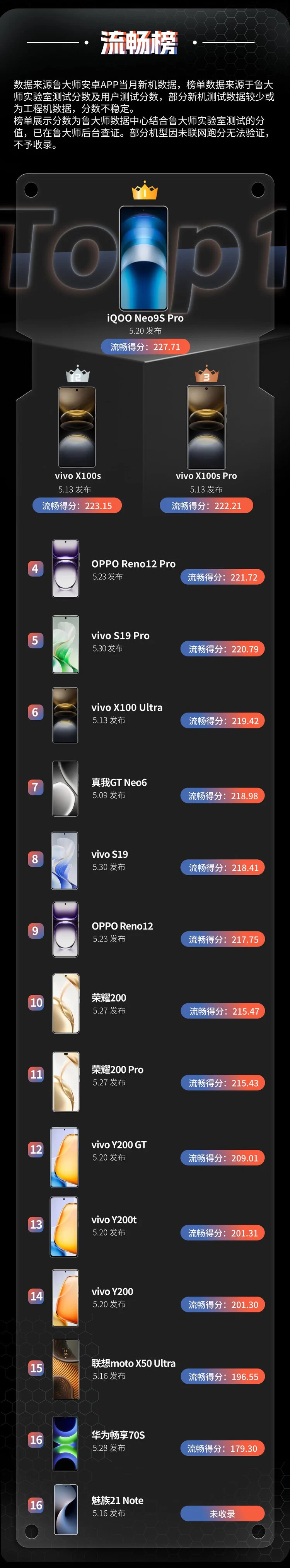 鲁大师5月新机性能/流畅/AI/久用榜:vivo终端在本月井喷,新老旗舰芯片再度同台竞技