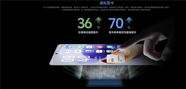 同时,后台留存率更高的内存融合4.0、智能调度处理器降低运行功耗的异构计算空间以及系统轻量化,这些新特性在日常使用中带来的流畅体验升级非常明显。而 “虚拟显卡”对安卓动效绘制流程进行了重构,提升App打开和退出场景的动效流畅度,减少掉帧卡顿问题。