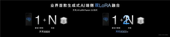 首先,天玑9300+支持天玑AI LoRA Fusion 2.0技术,是业界首个端侧双LoRA融合,让端侧大模型的技能得到更高效的扩充和延展,提供更高效和个性化的生成式AI体验。双LoRA融合技术与前一代相比,生成效率提升了100%,内存占用可降低50%。