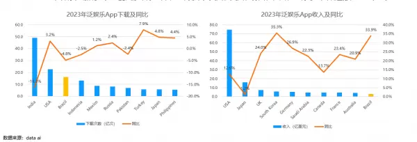图:2023全球泛娱乐应用下载与收入榜,巴西都在Top10