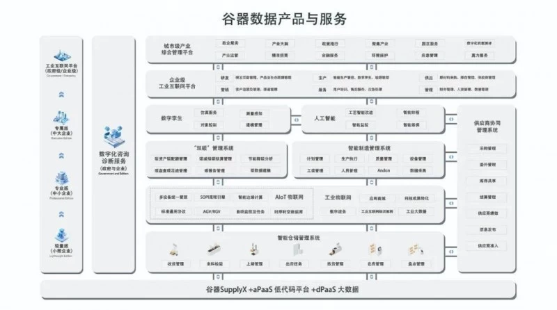 谷器数据深刻理解企业数字化转型痛点,推出了智能制造全栈式数字化转型解决方案,通过实现生产流程的透明化和智能化、仓储管理的自动化与智能化,上下游资源的协同化,为企业构筑了更加稳固和灵活的市场竞争力。