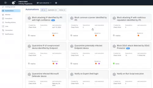 Check Point 的 Infinity 平台不仅可跨数据中心、网络、云、端点、移动设备和物联网提供威胁防护,而且还支持统一管理和安全运维,并利用全球实时威胁情报来预防网络攻击。Infinity Playblocks 可帮助管理和编排自动化威胁响应。