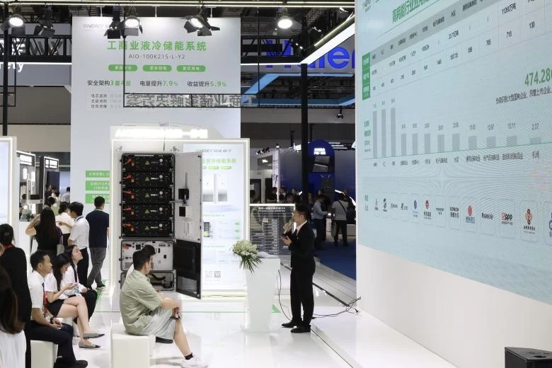 值得一提的是,易能数字首次亮相了创新之作“行业380V低压并网最大容量工商储一体机”,即289kWh液冷柜。据易能数字负责人介绍,“该产品在能效方面表现出色,相比100kW/215kWh设备降低度电成本15%。此外,采用先进的门装式温控系统,有效缩短散热路程,提升整体效能。同时通过AI智能算法,高温和低温两种智能切换模式,辅助系统年耗电量减少1230kwh”。这款一体机凭借其卓越的性能和高效的能源管理能力,吸引了众多业内人士的关注。