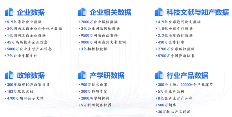 通过多维、立体、深度的信息整合,人们可以洞悉一家企业的图谱、股权结构、经营风险、技术专利等核心数据,对众多产业进行深度分析,也为商业社会的运行提供了数据参考。