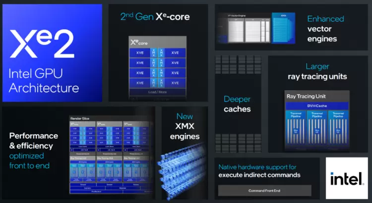 Xe2架构带来利用率提升,优化工作分配,并减少软件开销。与Xe架构一样,Xe2架构具有高度可扩展性,便于其被集成到如Lunar Lake等低功耗移动SOC以及后续推出的下一代锐炫独立显卡中。