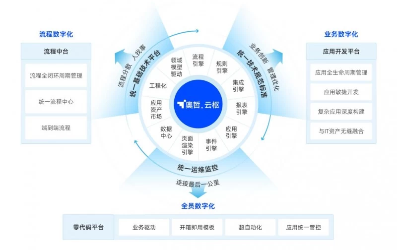 自创立之初,奥哲便以H3 BPM产品在流程管理领域取得了显著的成就,占据了国内市场的领先地位。随着企业数字化转型的需求日益迫切,奥哲推出了云枢低代码开发平台,进一步扩展了服务范围和能力。