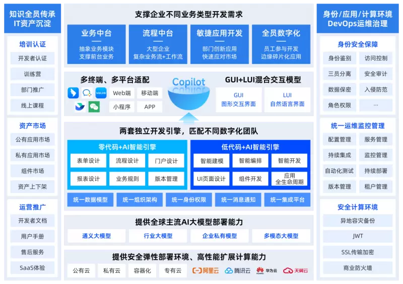 奥哲·云枢是帮助大中型企业快速构建复杂系统与各类应用的低代码开发平台,满足从应用开发、部署、上线、运维全生命周期的管理,采用最新的云原生、微服务架构理念,支持前后端快速扩展、在线开发、平滑升级。