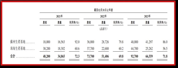 而在2023年,英诺赛科总产能为9.27万片,产量为6.66万片左右,利用率为71.8%。其中,苏州工厂2023年产能为4.8万片/年,产量为4.13万片左右,利用率为86%;珠海工厂2023年产能为4.47万片,产量为2.5万片左右,利用率为56.5%。