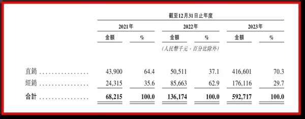 此外,2023年,英诺赛科直销营收占比为70.3%,获得订单收入4.166亿元,经销营收为1.76亿元,占比29.7%。