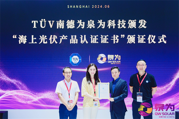 泉为科技:海上光伏技术闪耀SNEC,TUV南德颁发官方认证证书!